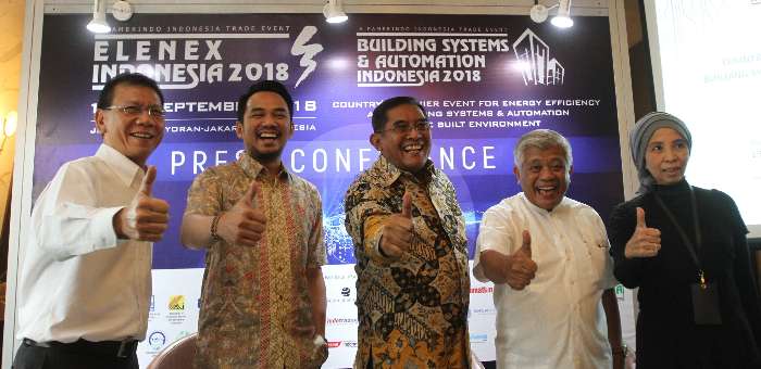 2018 Elenex Indonesia与2018 Building System&Automation Indonesia将于9月19 日至21日在马腰兰区JIExpo举行。图右1为Pamerindo Indonesia项目总监Wiwiek Roberto