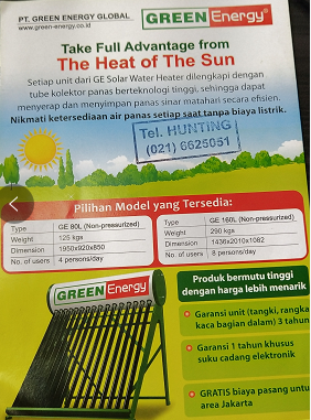 皇明太阳能印尼总代理,同时拥有自己品牌“绿能”。公司成立于1978年,进入绿色能源行业6年。