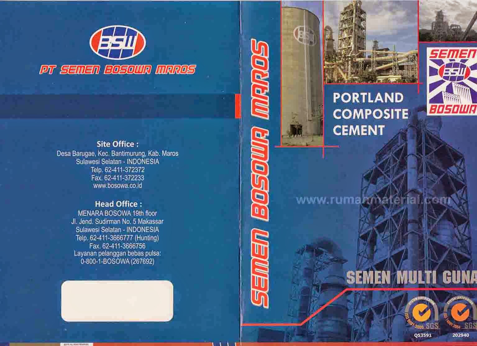 Bosowa是一家印尼私人企业集团,成立于1973年,位于南苏拉威西省的望加锡。 Bosowa这个名字来自3个武吉士王国的名字,即Bone,Soppeng和Wajo。 Bosowa经营着6个业务集团,即汽车,水泥,采矿和能源,金融服务,房地产和教育。除了运营其核心业务集团外,Bosowa还在媒体,体育和农业领域开展了许多开创性项目。 为了确保它能够满足未来几十年对水泥的高需求,Bosowa Semen集团开展了综合业务活动。 Bosowa Semen从事原材料采矿,水泥生产,供应物流,配送网络和预拌混合物,以满足整个印度尼西亚的市场需求。 目前,水泥生产和销售是Bosowa的主要业务。 Bosowa水泥集团的水泥生产能力为每年720万吨,是印度尼西亚第四大水泥集团,也是印度尼西亚唯一的印尼私营水泥公司。 Bosowa Semen集团集中在印度尼西亚东部,这是印度尼西亚经济增长最快的地区。 该工厂位于南苏拉威西岛的Maros Regency,是Bosowa Semen的主要工厂。该工厂是一个综合水泥厂,位于石灰石采石场的位置,石灰石采石场是制造水泥的主要原料,以便于原材料的回收。 Maros工厂还生产自己的熟料,年产能为400万吨,水泥年产量为420万吨。 位于东爪哇省Banyuwangi的Bosowa水泥厂面向爪哇,巴厘岛和努沙登加拉的消费者,水泥生产能力为每年180万吨。HEAD OFFICE MAKASSAR Menara Bosowa Jl. Jend. Sudirman, Ujung Pandang Makassar, Sulawesi Selatan 90113 - Indonesia : (0411) 3666777。REPRESENTATIF OFFICE JAKARTA Menara Karya, Lantai 16 JL. H.R. Rasuna Said, Blok X-5, Kav. 1-2 Jakarta 12950 - Indonesia : +62-21-5794 4344 (Hunting)
