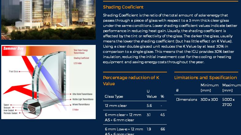 Tempered Safety Glass 钢化安全玻璃:规格尺寸300~2850 x 8600mm,厚度为3~ 19mm;