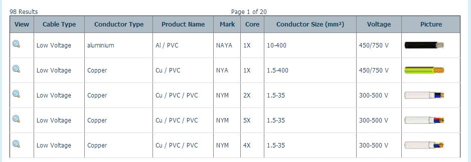 产品涉及:棒和导体如铝棒、铜棒、铝导体、铜导体、钢绞线;低压电力电缆如铝电缆、铜缆控制电缆、柔性电缆、仪器电缆;中压电力电缆如 铝电缆、铜缆;高压电力电缆;电信电缆、户外电缆、室内电缆; 专用电缆如防火性能、不易燃的铅涂层、尼龙涂层、热电偶。