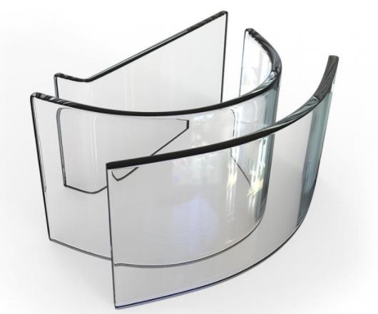 曲面玻璃:规格厚度为5-15毫米,半径为1000-13000mm,尺寸为600*600mm-2438*2500mm。